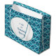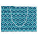 En klassisk scallopdesign som förbättrats av småkonst inspirerade blommigt inslag i underbara havets färg av teal, blått och grönt gör att den här stora presentsäcken blir skönare. Alla färg på båda sidor, inklusive bakgrunden, kan redigeras till vilken nyans som helst för anpassningsbarnas utseende.