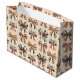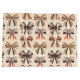 A pattern of intricate Scandinavian folk art Christmas bows in tradition blue and brown hues.