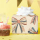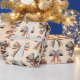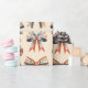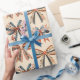 A pattern of intricate Scandinavian folk art Christmas bows in tradition blue and brown hues.