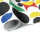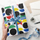 Sömlös Upprepa Geometric Scandinavian Nordic Bauhaus Stil Mid-hundradels Röd-, svart-, gult-, blått- och grönt-cirklar och halvcirkelformer Decorative Modern Mönster Design på vit bakgrund