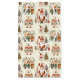 A wonderful winter scene featuring Santa Claus, snowmen, children, and bears in sweaters depicted in a traditional folk art style on a cream background.