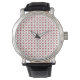 Striking geometric composition of red cross-shaped pendants arranged in a precise, repeating grid.