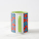 En chic Kaffe Mugg, med grönt läppar och handtag och Scarlet Fält poppies på Rik blå bakgrund (utmärkt gåva till vem som helst med en August Birthday). Från ett handmålat pappert kollage av Judy Adamson, är den här lysande blommigten en del av "Poppy Fält-samlingen" Posh & Painterly.