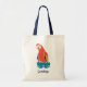 Skapa en personlig till din favoritfågel älskare. Den här väskan illustrerar scarlet macaw i röd, marin blå och gyllene gult med viss samordning av tropiska löv i turkospblått och är redot att vara personlig med en namn i marinblå manusskrift.