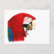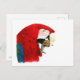 Vykort med scarlet macaw, original teckning i färgpenna av E V Kerr.