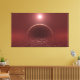 Ett scarlet måne sjunker ner i ett scarlet hav.