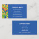 Ett affärskort som fångar öga med abstrakt röd, orange, gult och grönt på royalets blå bakgrund, med vit text. Redo att anpassa med egna detaljer.