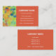 Ett affärskort som fångar upp öga med en abstrakt röd, orange, gult och grönt och en tangerinpanel med vit text. Redo att anpassa med egna detaljer.