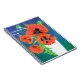 En ljusstark och glad bärbar spiral med en vit vas av scarlet poppies på blå bakgrund, från en pastellmålning av Judy Adamson.