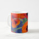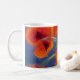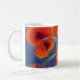 Vit mugg dekorerad med scarlet poppies på blå bakgrund