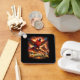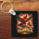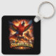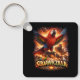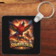 A colossal fiery parrot towers over a blazing cityscape as chaos erupts in a surreal, explosive fantasy showdown.