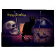 Den här Grattis på födelsedagen Halloween-presentsäcken har en läskigt svart katt och ett skämt med en punktion flaska. -
