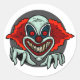 Kläderna är läskiga! Clown med rött hår och röd ögon.