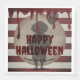 Den här skämtsamma anpassningsbarna Halloween-napkins har ett läskigt karneval tema. En skugga av en skrämmande clown som håller en ballong trycks över mitten. En papper karnevalsposter i vintage stil visas i bakgrunden, över ett rött och vitt strimlat mönster. Blodet droppar över den översta delen. Hälsning "Happy halloween" trycks över toppen i ett rött, olycksbådande typsnitt. En exempelfamilj namn skrivs ut ovanför bladen, som du kan anpassa för att inkludera ditt eget namn eller egen text.