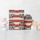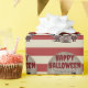 Den här skämtsamma anpassningsbarna Halloween som omsluter pappra har ett läskigt karneval. Tre skrämmande clowner står som grupp. En papper karnevalsposter i vintage stil visas i bakgrunden, över ett rött och vitt strimlat mönster. Hälsning "Happy halloween" trycks över toppen i ett rött, olycksbådande typsnitt. En exempelfamilj namn skrivs ut ovanför bladen, som du kan anpassa för att inkludera ditt eget namn eller egen text.