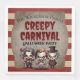 De här Halloween fest-servetterna från anpassningsbar har ett läskigt karneval. Tre skrämmande clowner trycks på grund. En papper karnevalsposter i vintage stil finns i bakgrunden, över ett rött och vitt strippat mönster.