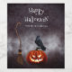 Utformningen har en skrämmande ond pumpkin , svart raven och häxborom på en mörk, grym texturerad bakgrund med "Happy halloween" i Halloween, temad typografi. Enkel att anpassa med din egen text. Perfekt för Halloween fest eller favörer.