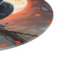 Bild på ett stort Gren i Träd framför ett helt måne med flugande Fladdermus i bakgrunden är en svart katt med Orange Ögon.