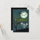 Roligt Halloween illustrerar en mamma på en skrämmande nattscen med fullt, död träd och fladdermöss. En mycket detaljerad Happy halloween-text i gult färg och ett läskigt teckensnitt.