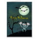 Roligt Halloween illustrerar en mamma på en skrämmande nattscen med fullt, död träd och fladdermöss. En mycket detaljerad Happy halloween-text i gult färg och ett läskigt teckensnitt.