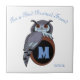 En illustration av en läskigt skopa uggla från sidoutseende. Fågeln tittar över axeln. Under uggla är vinge ett utvidgat öga som är avsett att vara ram i ett monogram. M är kort för monogram och kan vara personlig för initialer.