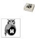 En illustration av en läskigt skopa uggla från sidoutseende. Fågeln tittar över axeln. Under uggla är vinge ett utvidgat öga som är avsett att vara ram i ett monogram. M är kort för monogram och kan vara personlig för initialer.