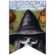 Kläskiga, läskigt skeletthäxdesign med spindelnät och gamla pumpor, perfekt för att fira Halloween.