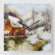 scen snö med vatten-hjul fyrkantig klocka
