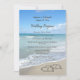 Elegant och vacker lista över bröllopsprogram och bröllopsfest. Sceniska hjärtan i sandstrandbilden, för visioner om relaxering i paradiset, fira ditt badbröllop med denna vackra design. Två förreglande hjärtan som dras i stranden på havets strand, perfekt för en destination, ö, tropisk paradiskustsjöfart. Blåturkos och brunt sand med vit vågar som kraschar på stranden.