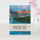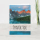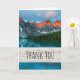 Tack för ditt kort med ett vackert foto med ett vackert bergsområde, grått och rost färg. En skog med grönt omger en lugn sjö. En lugn och fredlig bild.