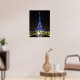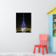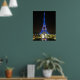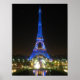 En scenvy från Paris, Frankrike. Berömdens landmärke, eiffel torn, som ses på natten upplyst av ljusblått ljus.