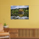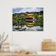 Fin fotografisk bild av en scenisk japansk trädgårdsreträtt med Golden Pavilion pagoda som reflekterar i vatten.