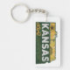 Den rektangulära akryliska nyckelkedjan har en stil-scenisk Kansas-vinjett i en statsformad silhuett. Lägg till ditt namn, monogram eller annat meddelande på baksidan.