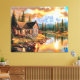 Vackert kanvastryck Wraps på anpassningsbarnas vägg med ett vackert berg och solsken med moln i bakgrunden med serene vatten och en häpnadsväckande loghytt.. Underbara biet för alla väggar i ditt hem