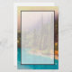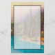 Stationär med ett scenfotografi av det nordliga landskapet. En turkos färgad sjö med en skog av gräs träd i bakgrunden och en dimmig himmel ge den en magisk mystisk kvalitet.