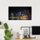 Ett scenigt citysslande. Den singapore skyline nattetid med många högupplysta byggnad med sina färgstarka reflektioner som belyser den pikturesska vattenfronten längs Singapores flod.