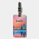 Ett bagagemärke med en vacker grafisk utformning som ger ett fredligt sjö med hjort. och högt gräs träd speglas i vatten. Stars hover över huvudet.