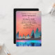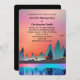 Bröllopsinbjudan med en vacker grafisk utformning som visar ett fredligt sjö med hjort och högt gräs träd i vatten. Stars hover över huvudet.