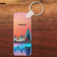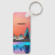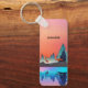 En nyckelring med en vacker grafisk utformning som rymmer ett fredligt sjö med hjort. och ett högt gräs träd som reflekteras i vatten. Stars hover över huvudet.