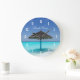 Scenisk tropisk strand med det Thatched paraplyet Stor Klocka