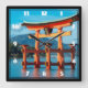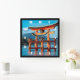 Sceniskt landskap med den japanska Torii grinden Fyrkantig Klocka