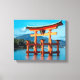 En stängning av den välkända ikonen flytande torii grind i Japan på Miyajima-ön, även kallad Shrine Island. Med en fantastisk berggrund på kristallklar vatten. Vid högvatten sitter de intressanta guld och de röda grind i vatten och skapar söt reflektioner på turkosblått vatten.