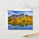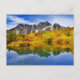 Vykort med ett vackert fotografi av land. Stenberg med en höstskog på ljusa färger. Ett tyst sjö avspeglar bergen, träd och gräset.
