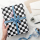 Inpackning pappert designat med ett svartvitt rutigt mönster.