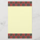 Brevpapper som presenterar schackdesign med riddaren, pantsätter, råka, och bishopen i rött och blått kvadrerar.