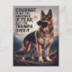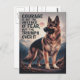 En tysk schäferhund står stolt på en bergstopp, med en motiverande citat om mod, Mod är inte frånvaron av rädsla, utan triumfen över den, som visas ovan. Hundens självsäkra pose och den natursköna bakgrunden frammanar en känsla av styrka och beslutsamhet.