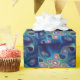 En flerfärgad (rosa, grön, blå, gul), looping fraktal bild på en mörkblå bakgrund. En tolkning av hur natthimlen kan te sig för en sibirisk schaman medan han är i trans och kommunicerar med andar.