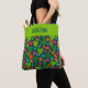 Skapa en personlig till väskan som är perfekt för St. Patrick's Day, men söt nog för använda i år. I väskan finns enkla handmålade illustrationer av schampor, blommor och regnbågar i stil. Den ljusa och färgstarka grafiken ställs in mot en mörk teal bakgrund. Det är redo att vara personlig med namn överst.