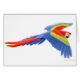 Ser färgrika scharlakansröda flugor för en macaw över ett hälsningkort i denna avian konstdesign av Carolyn McFann av studion för två spinnakatter våra matcha portofrimärken för.