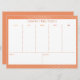 Det här moderna budgetvänliga veckoschemat innehåller en bakgrund med minimalistisk orange för abstrakt med vit mall 5 kolumner för dagar i veckan MON till FRI och 2 rektanglar för ytterligare text nedan (Anteckningar och prioritet). Anpassa det med din egen namn och text till kostym efter dina behov.
